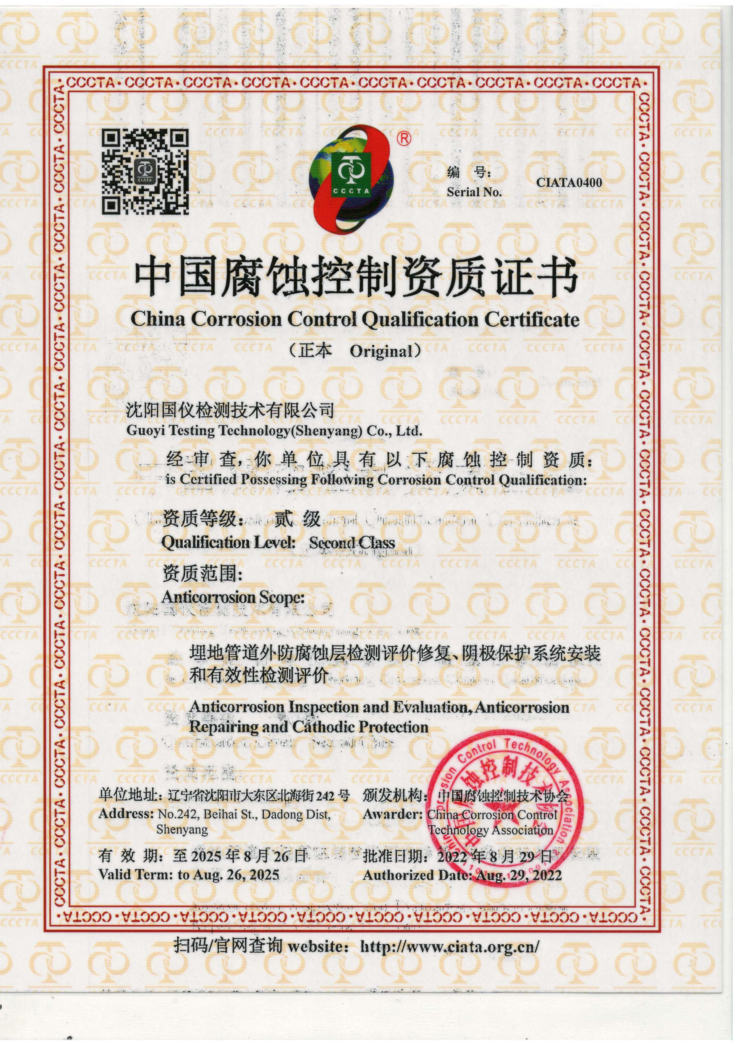 • 防腐資質(zhì)證書(shū)